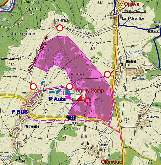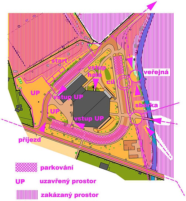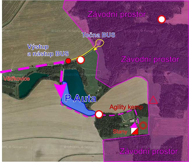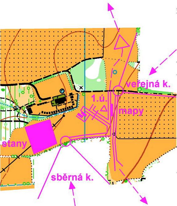 přesun MČR štafet a družstev do náhradního prostoru (ca 2km jižně